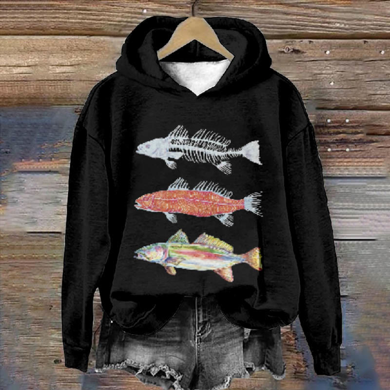 Dashingsoul Women's Creative Different Forms Of Fish Print Casual Long Sleeve Hoodie