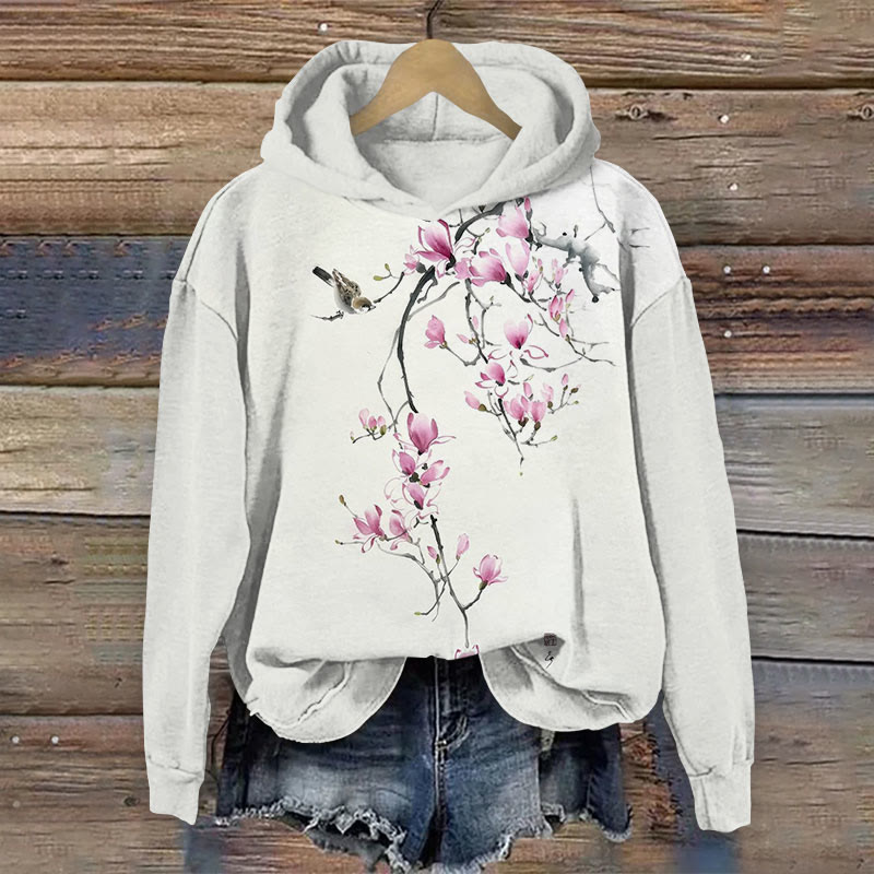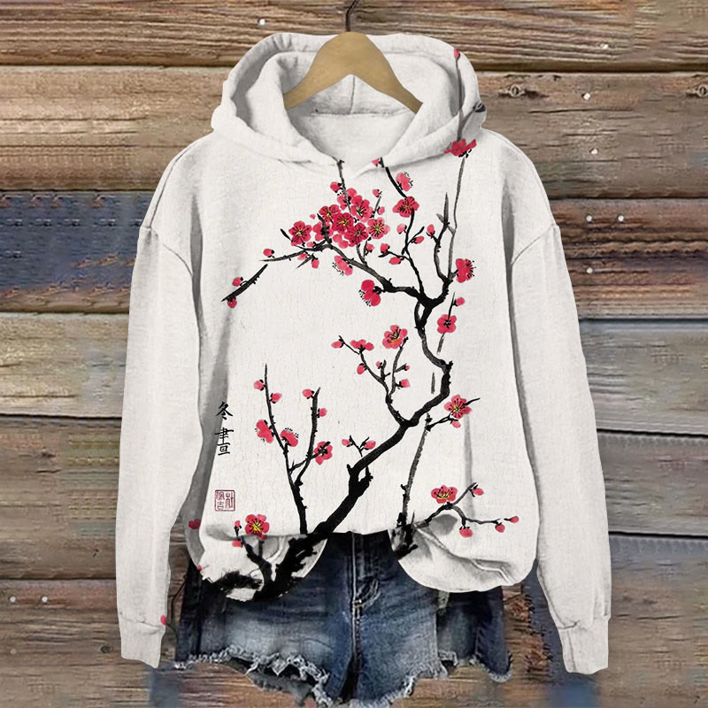 Dashingsoul Simple Plum Blossom Art Print Casual Long Sleeve Hoodie