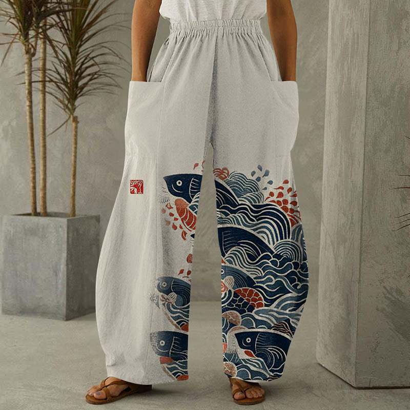 Dashingsoul Women's Japanese Art Carp Print Casual Pants