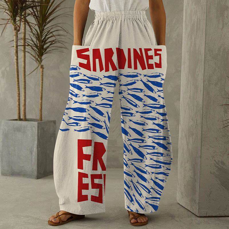 Dashingsoul Women's Casual Fresh Sardines Art Print Casual Pants