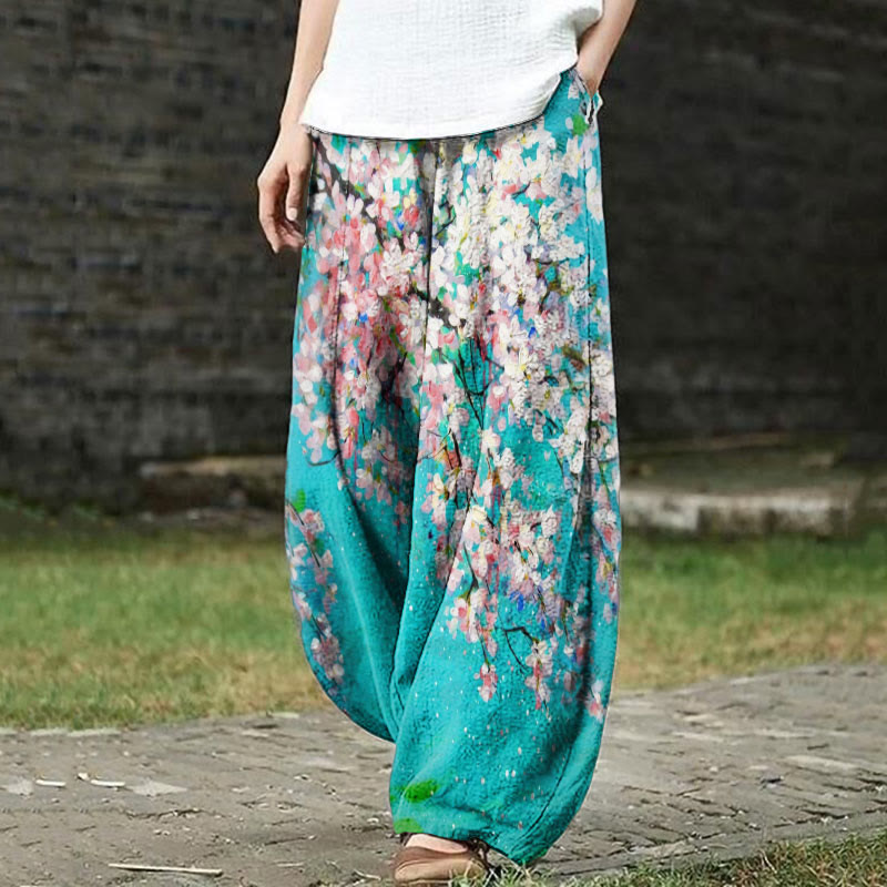 Dashingsoul Japanese Blossom Art Print Casual Pants