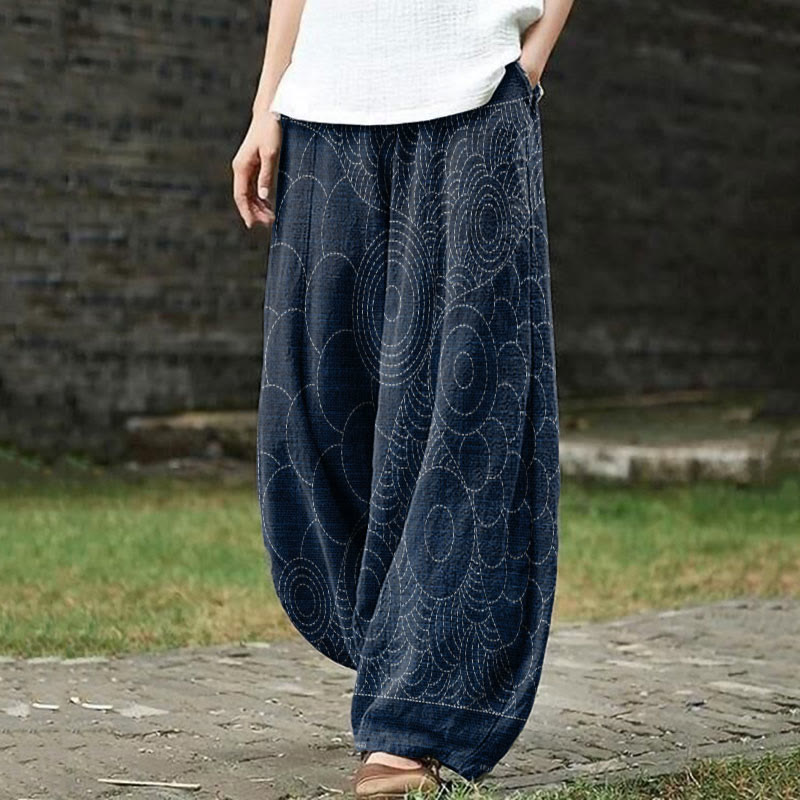 Dashingsoul Retro Japanese Floral Line Art Print Casual Pants
