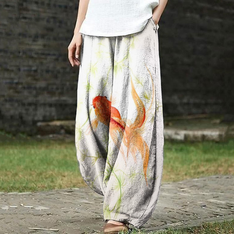 Dashingsoul Artistic Goldfish Ink Painting Art Print Casual Pants