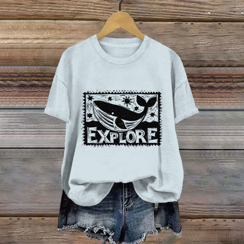 Dashingsoul Cotton Whale Lino Art Print T-shirt