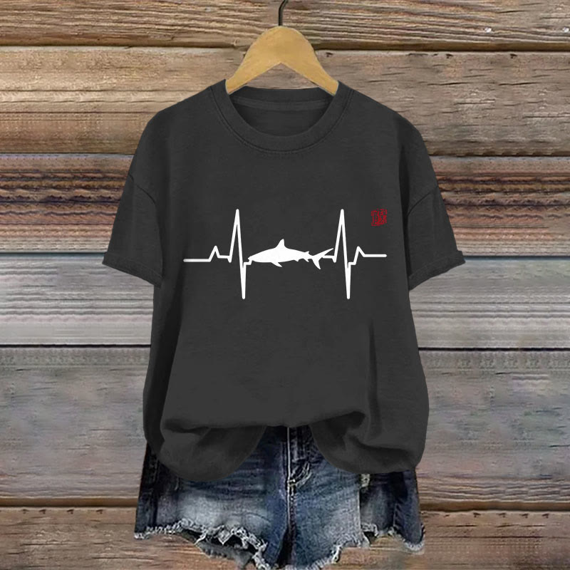 Dashingsoul Shark Heartbeat Art Print Casual T-shirt