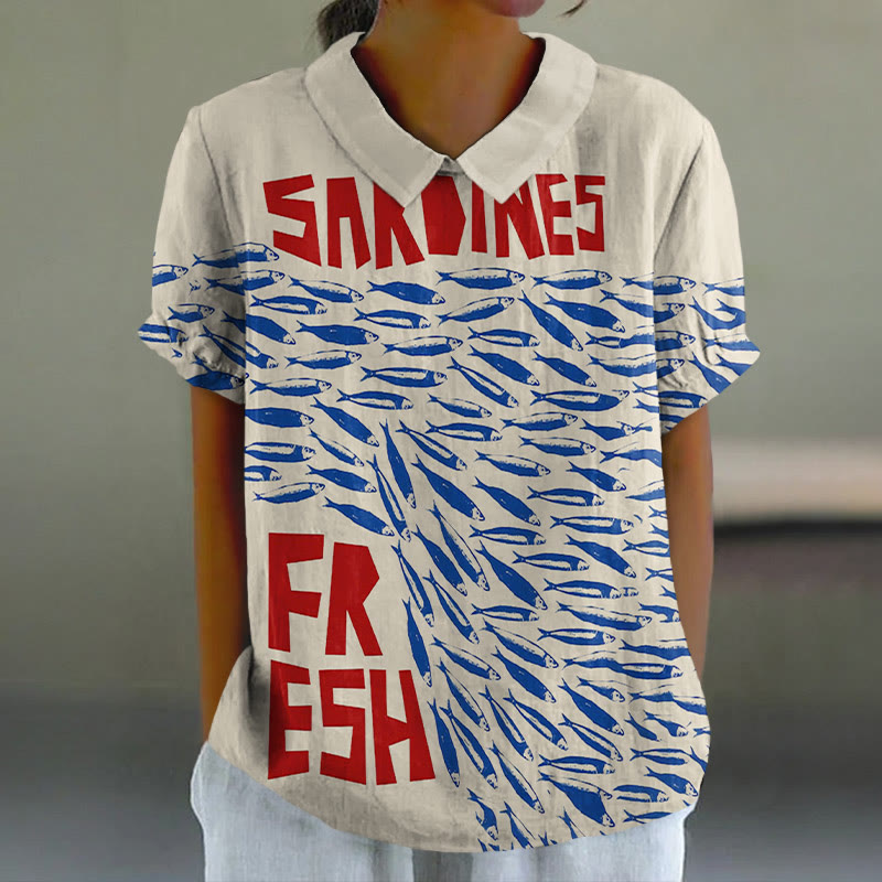 Dashingsoul Women's Casual Fresh Sardines Art Lapel Loose Blouse