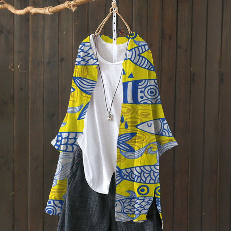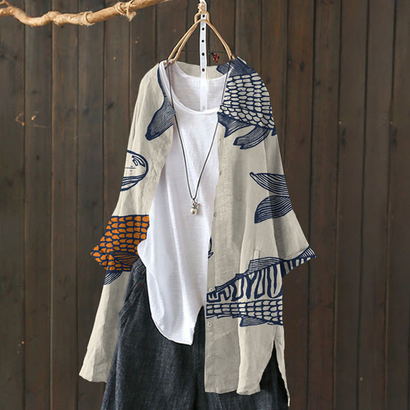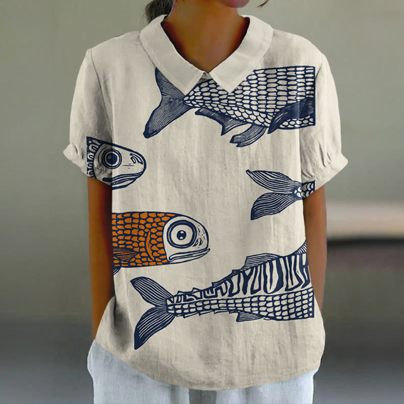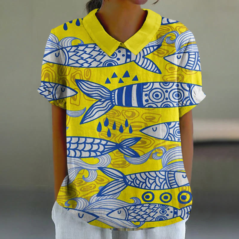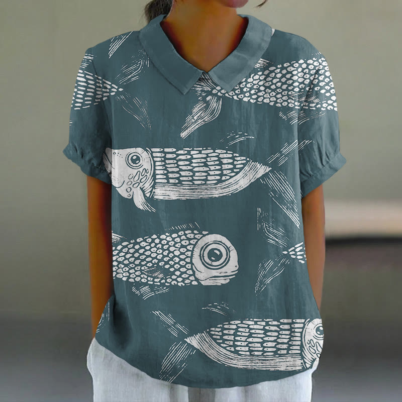Dashingsoul Women's Funny Fish Tails Art Lapel Loose Blouse
