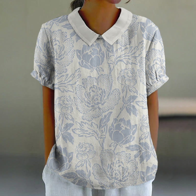 Dashingsoul Women's Vintage Floral Art Lapel Loose Blouse