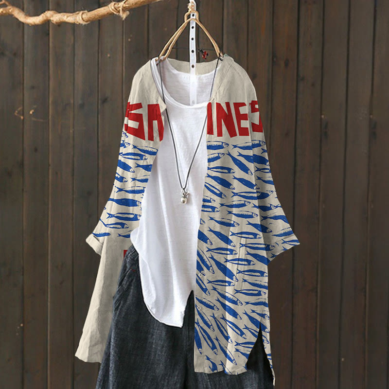 Dashingsoul Women's Casual Fresh Sardines Art Print Cardigan