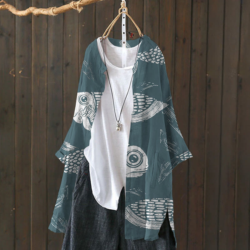 Dashingsoul Women's Big Eye Fish With Scales Art Print Cardigan