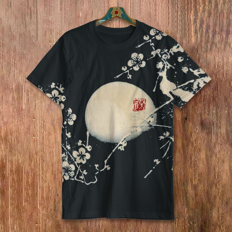 Dashingsoul Plum Blossom & Moon Japanese Art Print Short-sleeved Men's Casual T-shirt