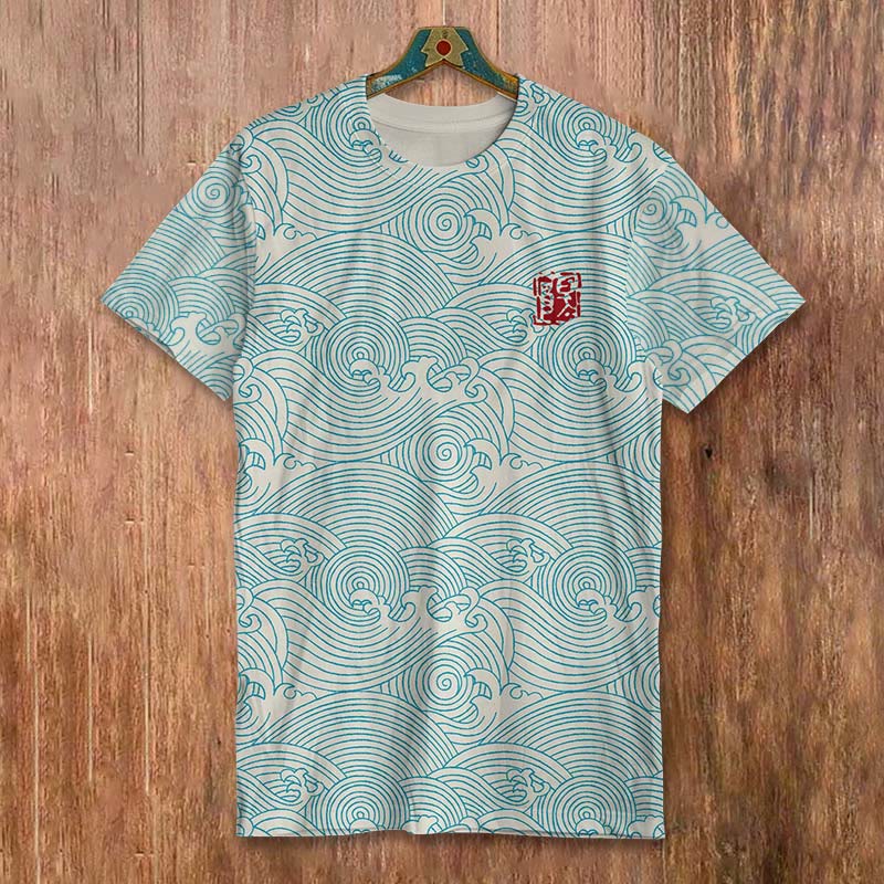 Dashingsoul The Silent Dance Of Waves Japanese Art Print Short-sleeved Men's Casual T-shirt