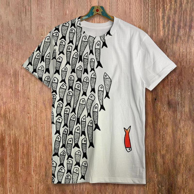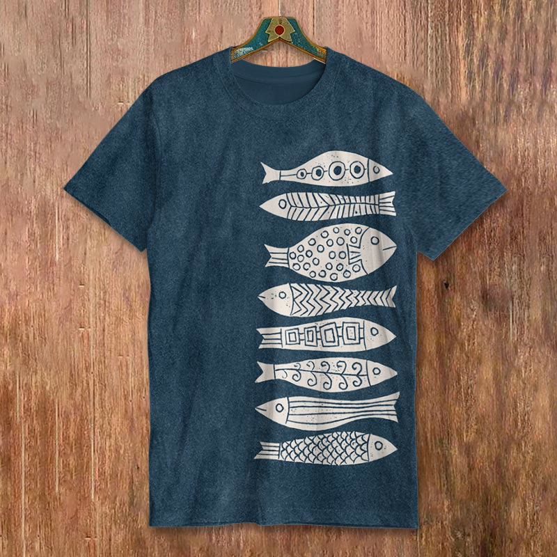 Dashingsoul Fish Japanese Lino Art Print Short-sleeved Men's Casual T-shirt