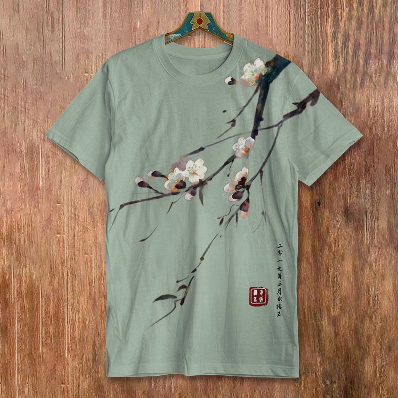 Dashingsoul Vintage Plum Blossom Art Print Short-sleeved Men's Casual T-shirt