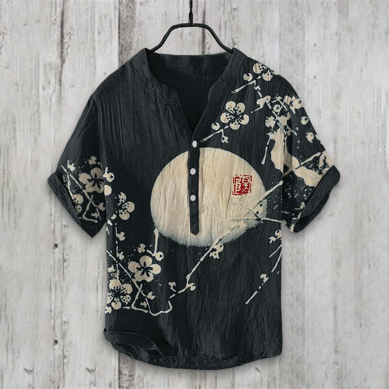 Dashingsoul Plum Blossom & Moon Japanese Art Print Casual Shirt