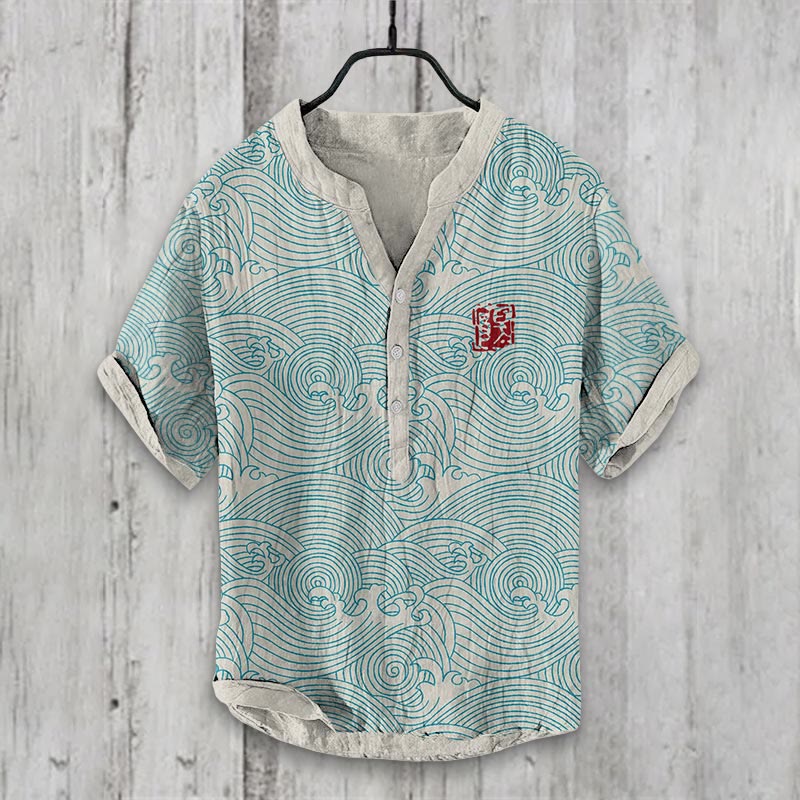 Dashingsoul The Silent Dance Of Waves Japanese Art Print Casual Shirt