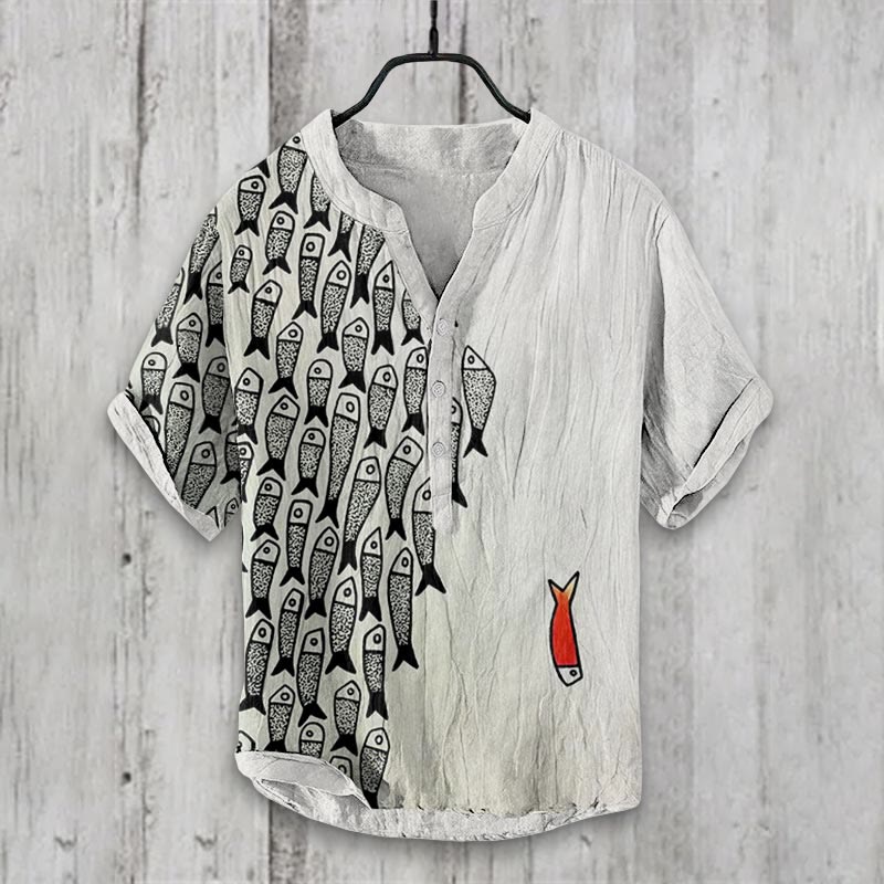 Dashingsoul Fish Japanese Lino Art Print Casual Shirt