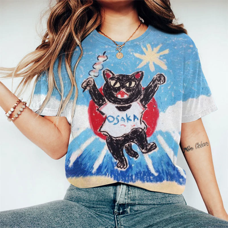 Dashingsoul Cute Osaka Cat Crayon Drawing Art Print T-shirt