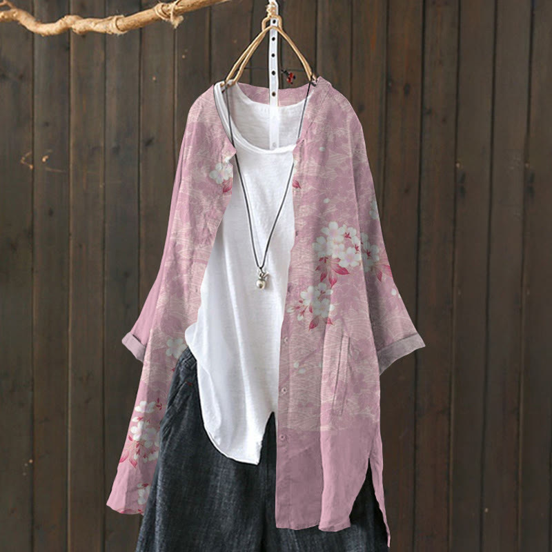 Dashingsoul Japanese Peach Blossom Print Cardigan