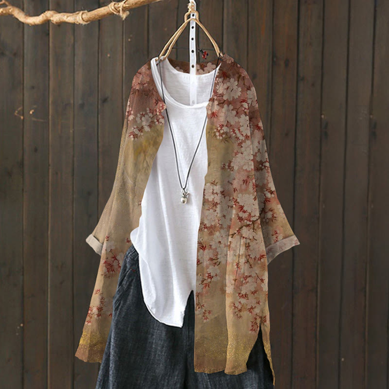 Dashingsoul Japanese Cherry Blossom Print Cardigan