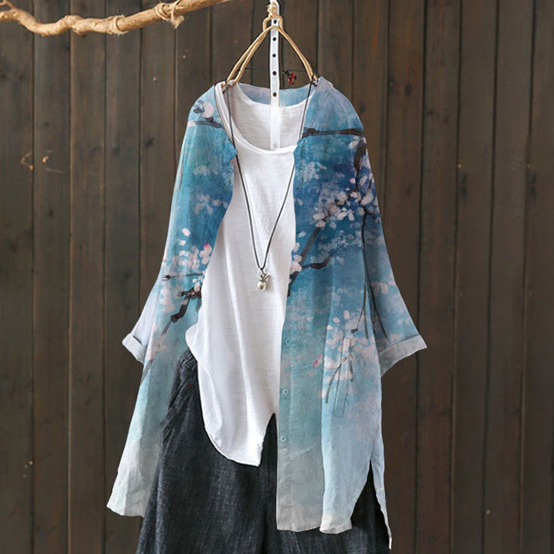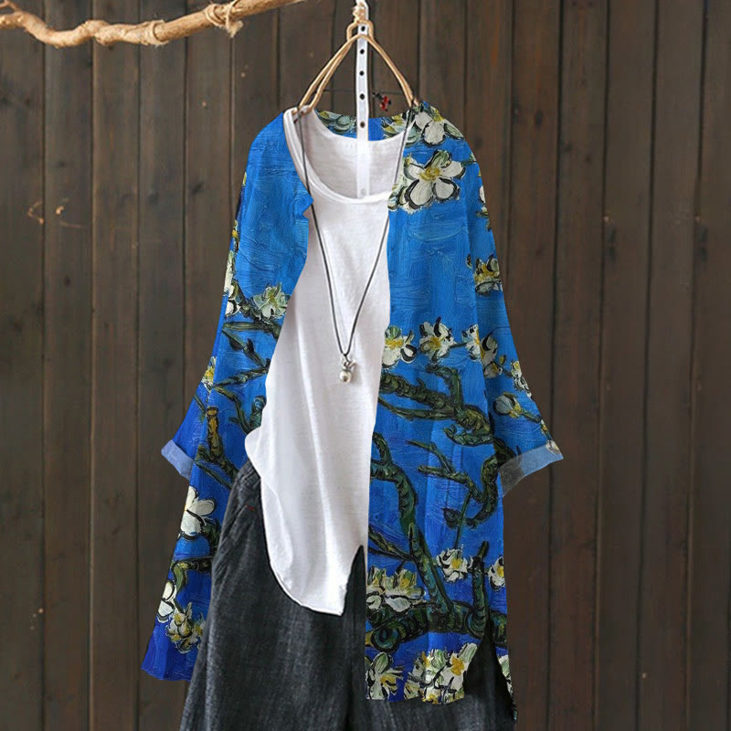 Dashingsoul Van Gogh Plum Blossom Print Cardigan