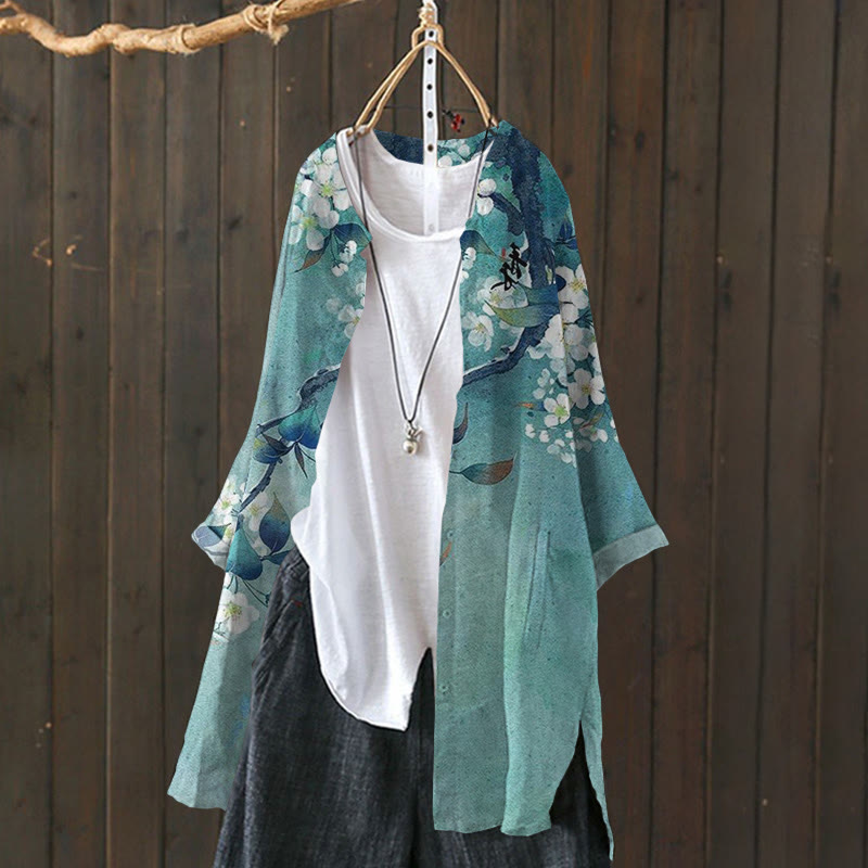 Dashingsoul Japanese Pear Flower Print Cardigan