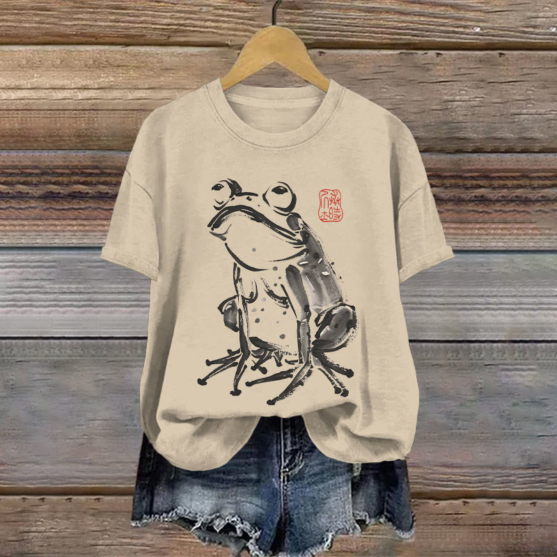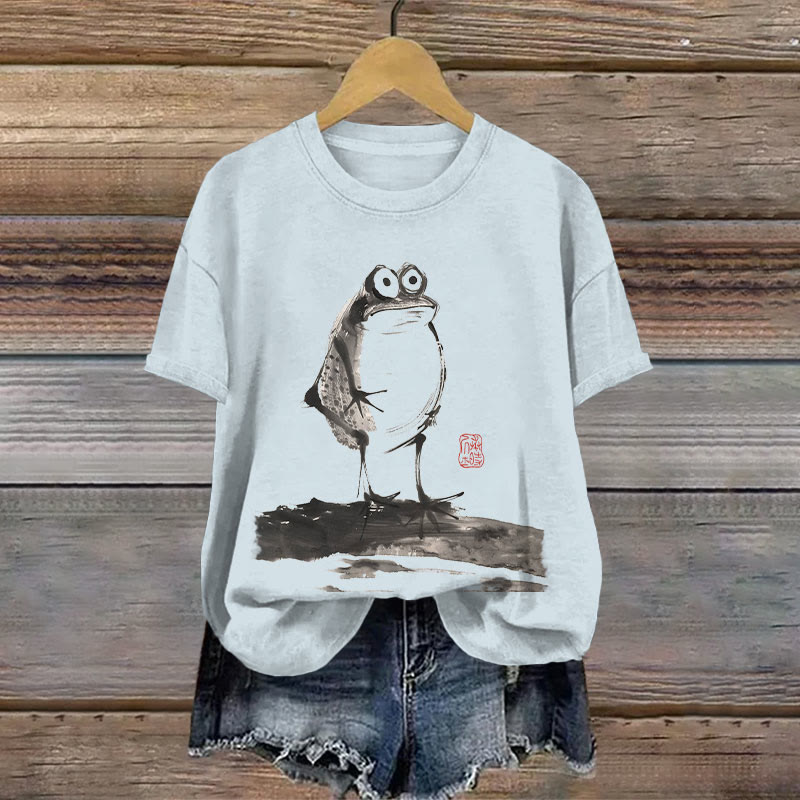 Dashingsoul Cotton Japanese Retro Funny Frog Print T-shirt