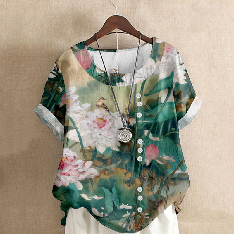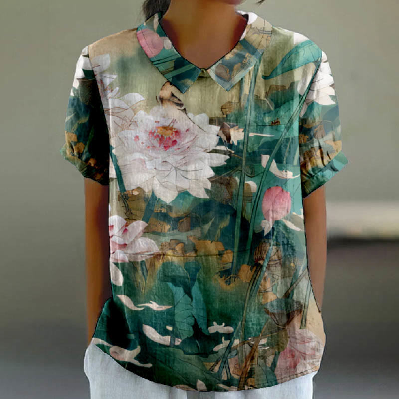 Dashingsoul Women's Summer Pretty Lotus Blossom Art Print Blouse