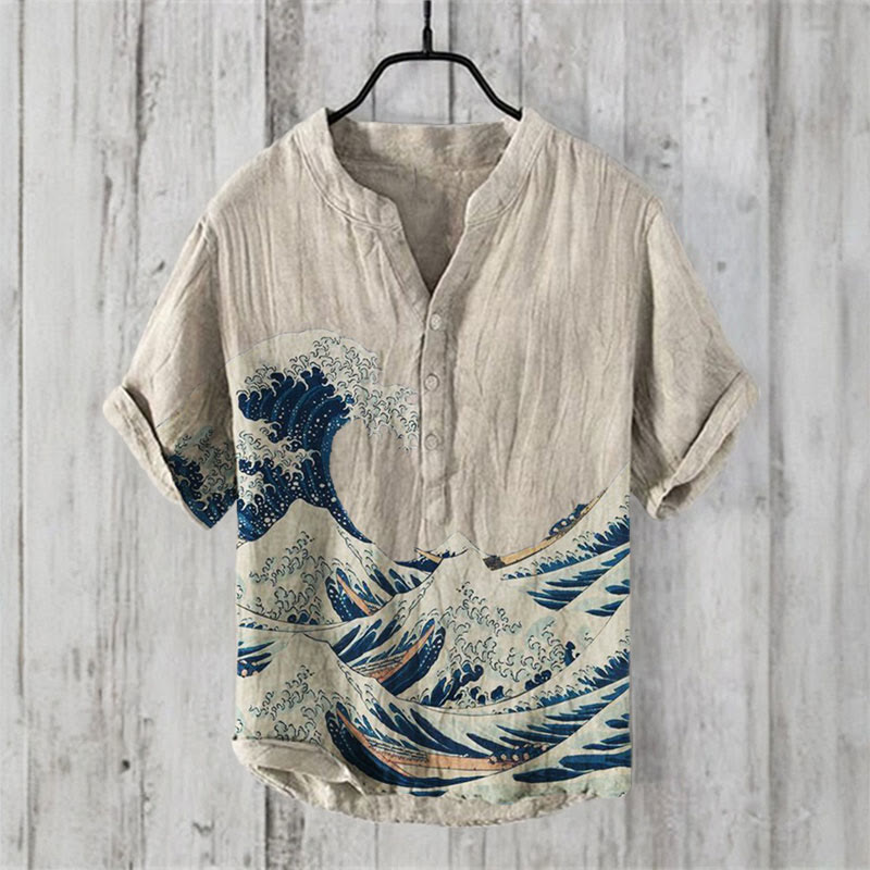 Dashingsoul Japanese The Great Wave Off Kanagawa Vintage Print Casual Shirt
