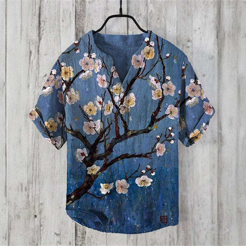 Dashingsoul Vintage Japanese Art Plum Blossom Print Casual Shirt