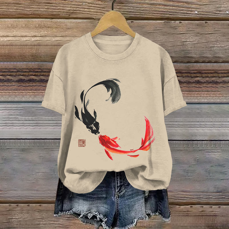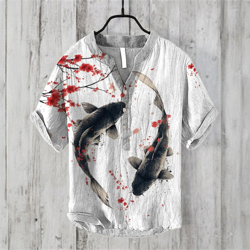 Dashingsoul Vintage Japanese Fish Art Print Shirt