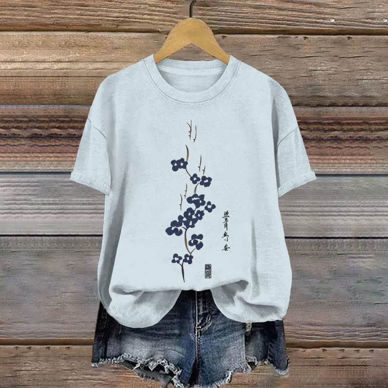 Dashingsoul Cotton Vintage Japanese Floral Abstract Art Print T-shirt