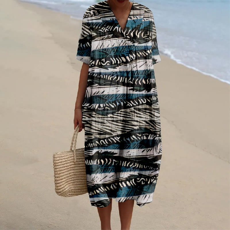 Women's Abstract Ocean Waves Art Printed Short-sleeved Midi Dress