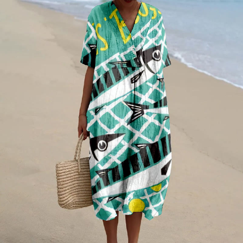 Women's Creative Sardine Fish Casual Printed Short-sleeved Midi Dress