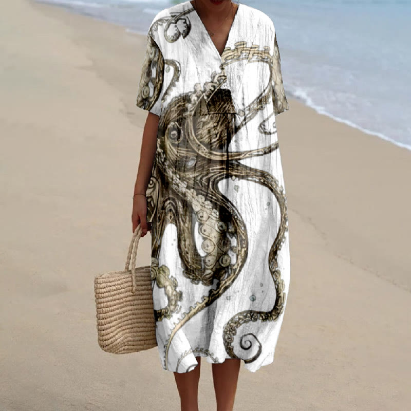 Women's Lovely Octopus Dancing Tentacles Art Printed Short-sleeved Midi Dress