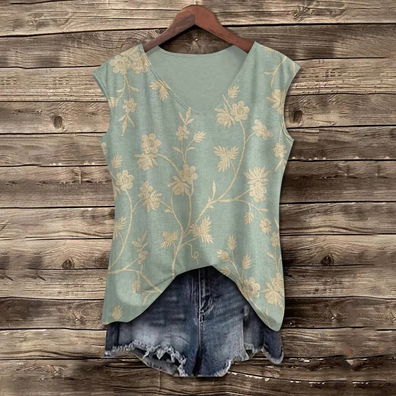 Dashingsoul Women's Retro Floral Casual Print V-neck Tank Top