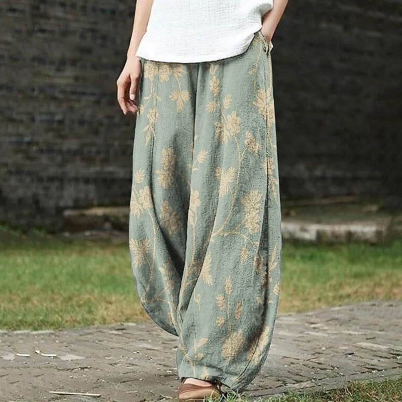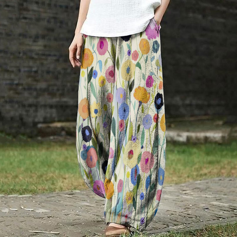 Dashingsoul Women's Retro Floral Art Print Casual Pants
