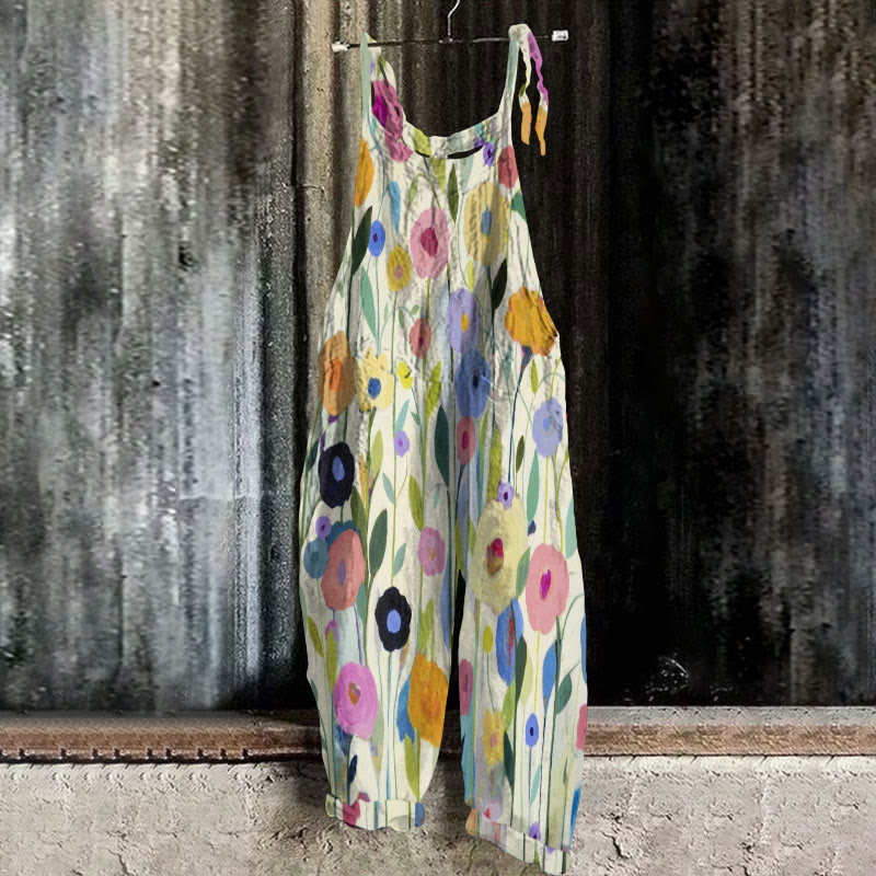 Dashingsoul Oil Painting Spring Field Art Printed Casual Jumpsuit