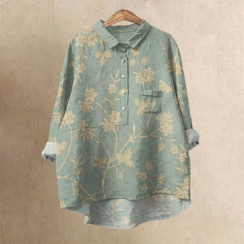 Dashingsoul Women's Retro Floral Print Casual Lapel Loose Blouse