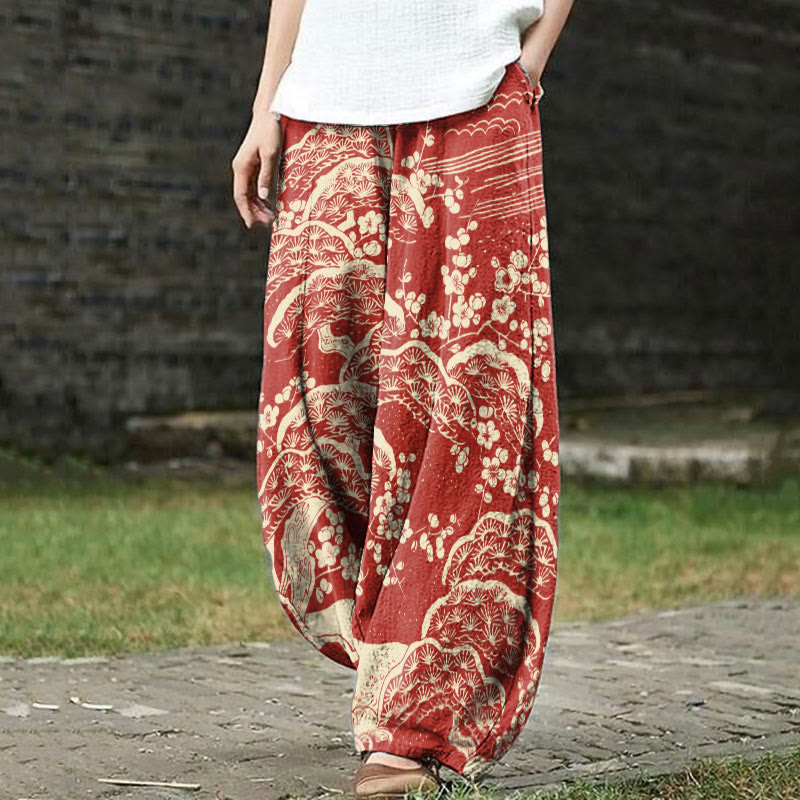 Dashingsoul Women's Japanese Art Plum Blossom Print Casual Pants