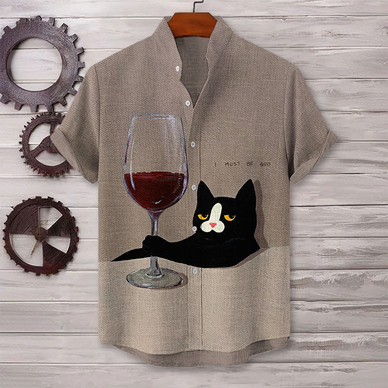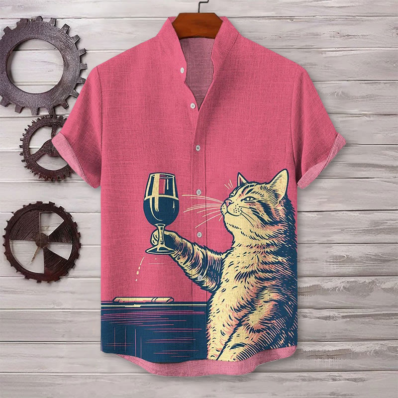 Dashingsoul Men's Fun Cat Wine Art Print Casual Shirt