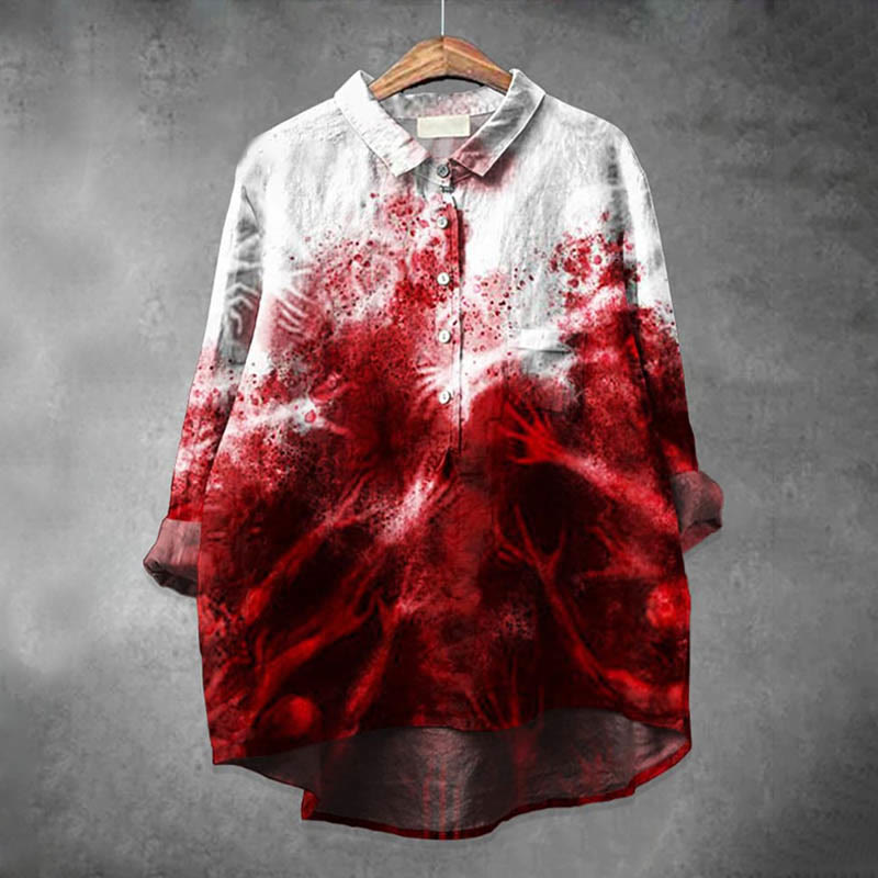 Dashingsoul Women's Bloody Skull Horror Art Print Casual Lapel Blouse