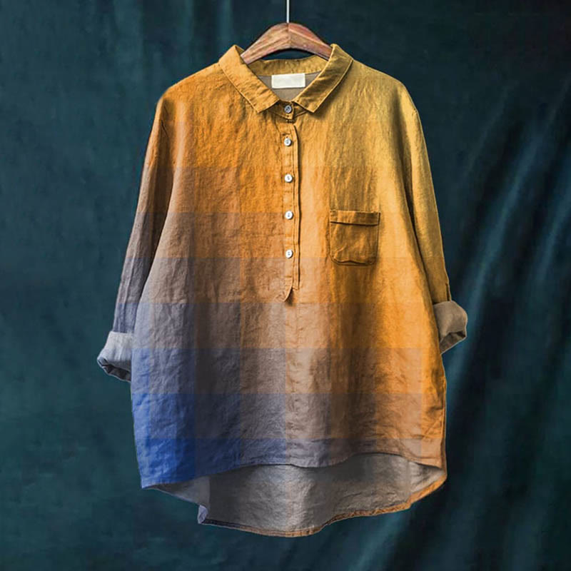 Dashingsoul Women's Vintage Ombre Blurry Grid Casual Print Casual Lapel Blouse