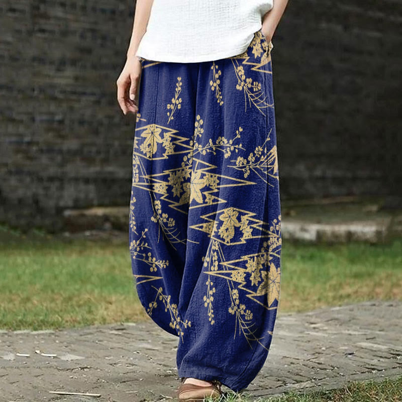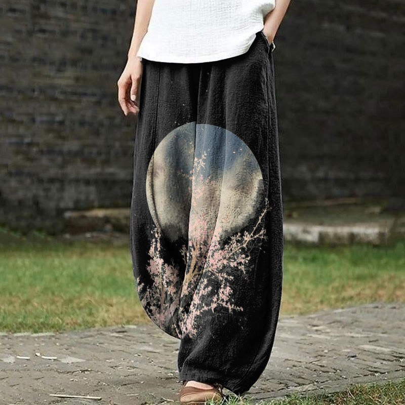Dashingsoul Women's Japanese Retro Full Moon Plum Blossom Print Casual Pants