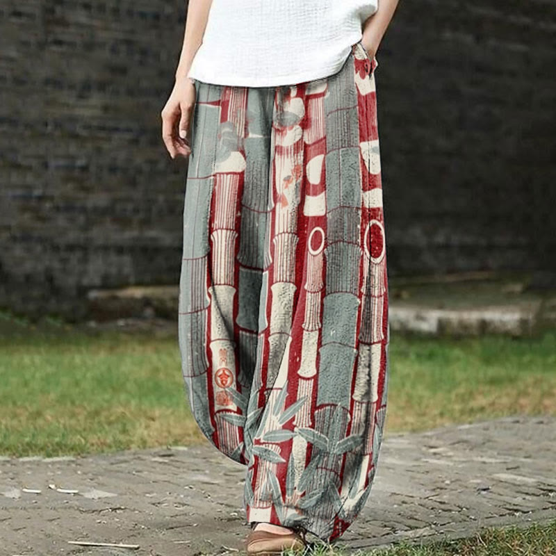 Dashingsoul Retro Bamboo Japanese Art Print Casual Pants