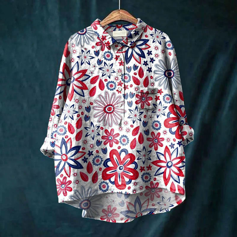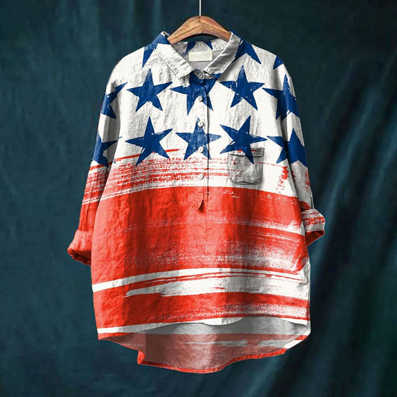 Dashingsoul Women's Abstract American Flag Old Style Art Print Casual Lapel Blouse