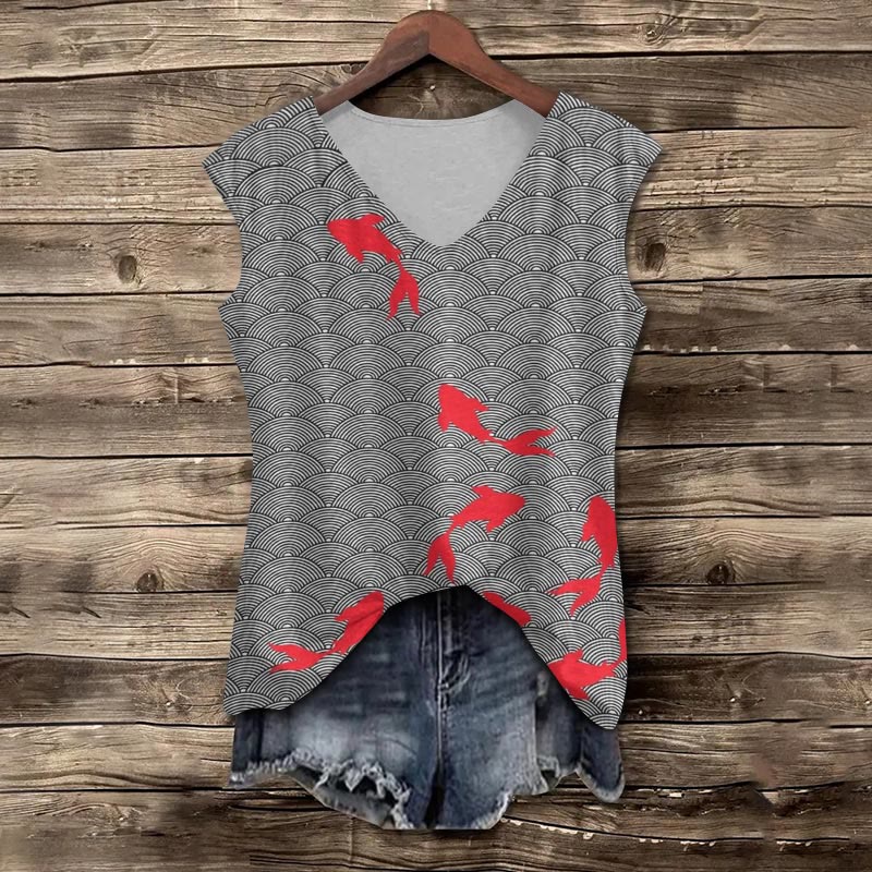 Dashingsoul Japanese Art Carp Print V-neck Tank Top