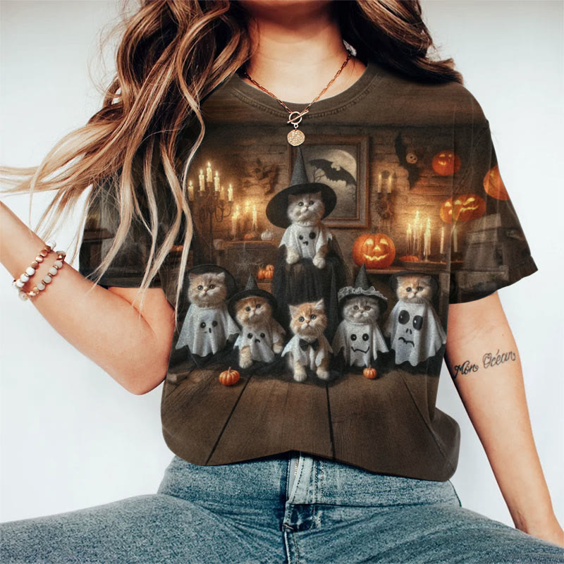 Dashingsoul Halloween Cute Ghost Cat Print T-shirt