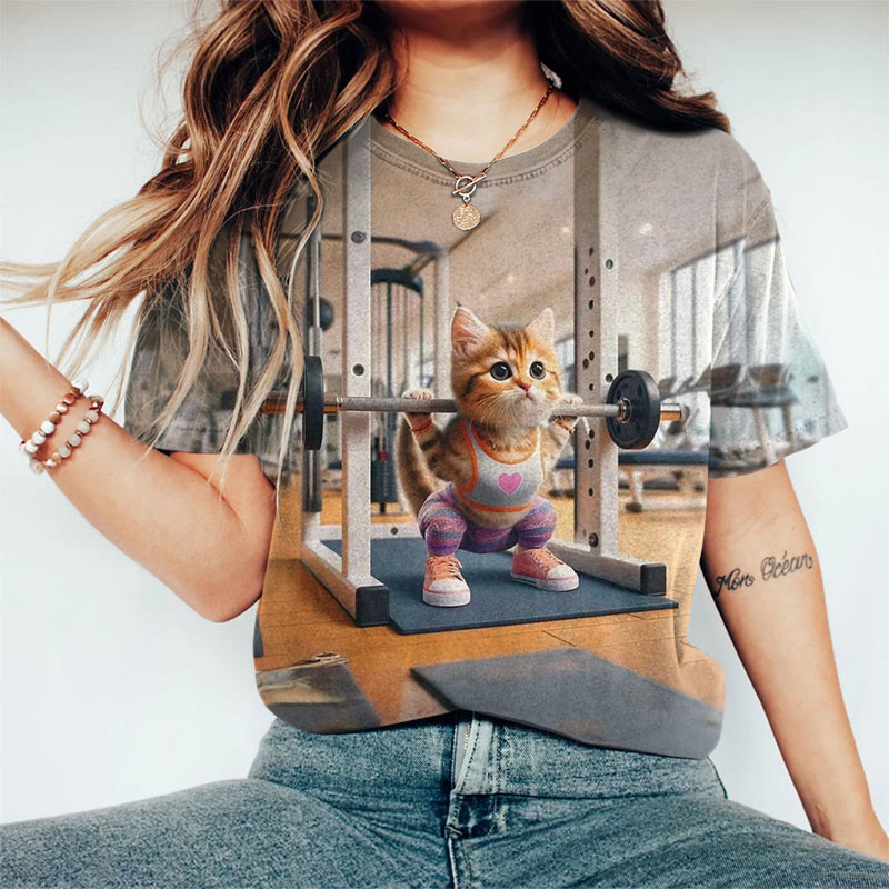 Dashingsoul Funny Fitness Cat Print T-shirt
