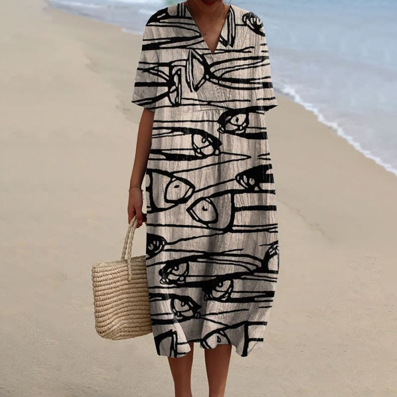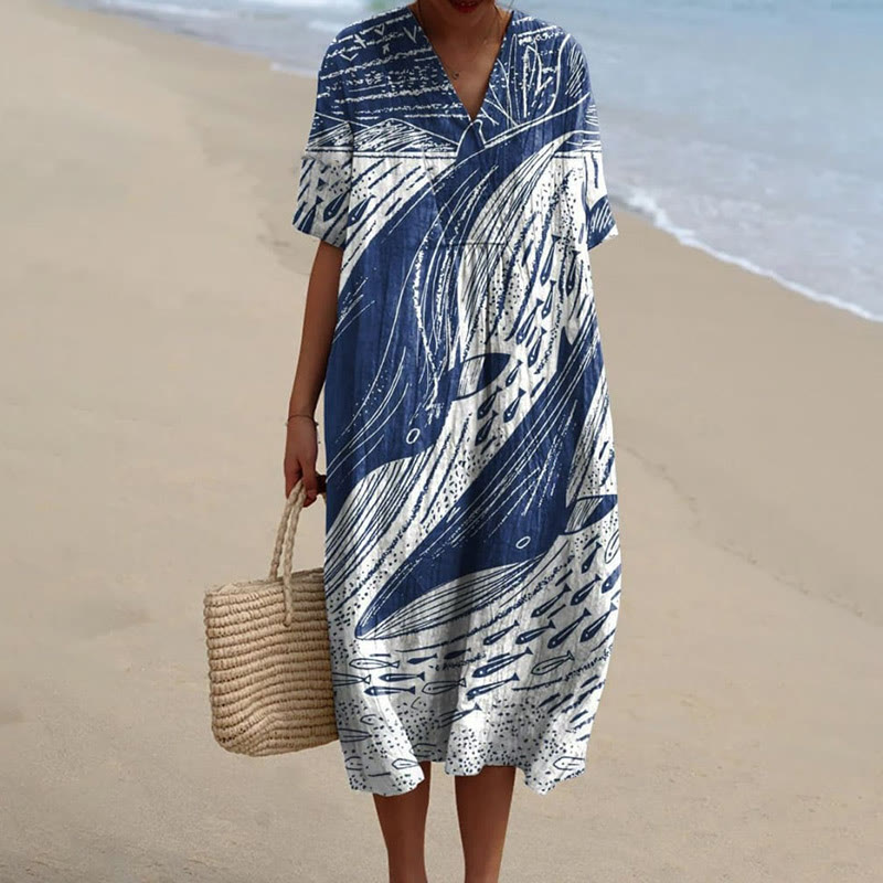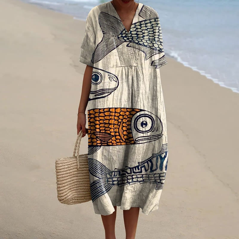 Women's Funny Fish Tails Art Print Short-sleeved Midi Dress